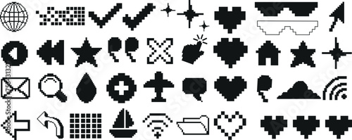 Set of black web icons representing various online and digital activities for user interface design and navigation enhancements