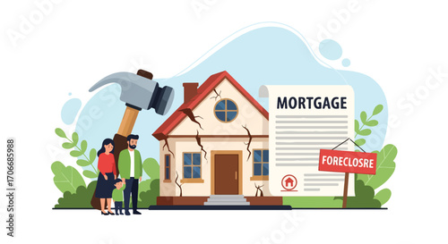 Overspend causing debt problem, financial failure or mistake, mortgage loan risk, bankrupt or credit score trouble concept.life and employment of people.