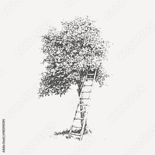 A detailed black and white illustration of a large full tree with intricate branches