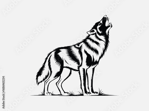Dramatic howling wolf silhouette against white background, perfect for logos, branding, and powerful visual statements