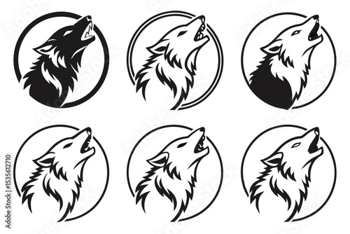 Striking wolf silhouette collection howling at the moon, perfect for tattoo design, logo, or modern wildlife branding with a tribal, nature inspired aesthetic