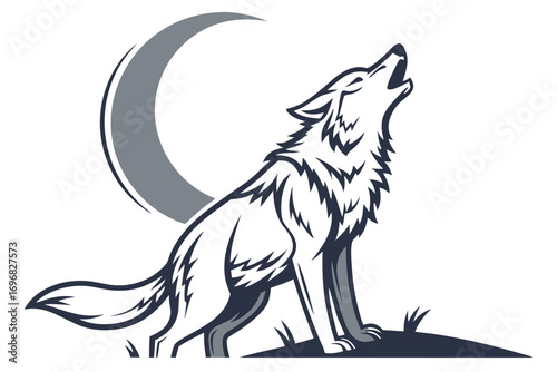 Majestic wolf howling at the moon silhouette evokes primal power and wild beauty, ideal for nature designs, mystical themes, or striking logo concepts