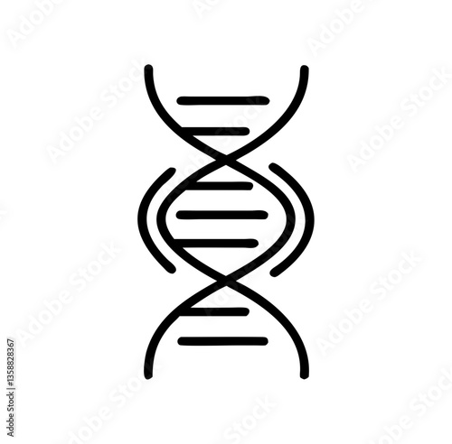 Simple line art icon of a DNA double helix strand, representing genetics, biology, and scientific research and technology.