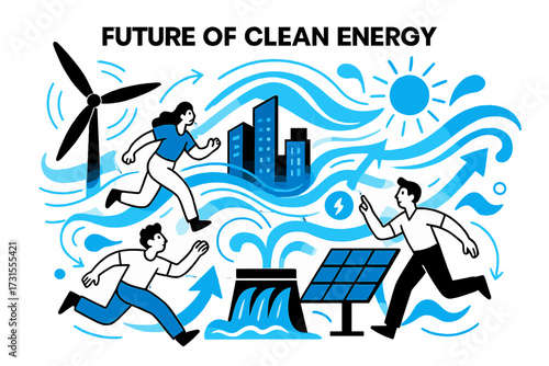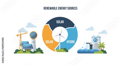 Diverse renewable energy icons symbolize sustainable power solutions for a greener future