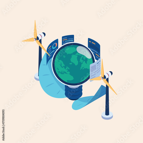 Sustainable solutions vector icons showcase ecological balance and renewable energy resources