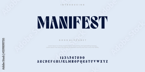 MANIFEST Abstract Fashion font alphabet. Minimal modern urban fonts for logo, brand etc. Typography typeface uppercase lowercase and number. vector illustration