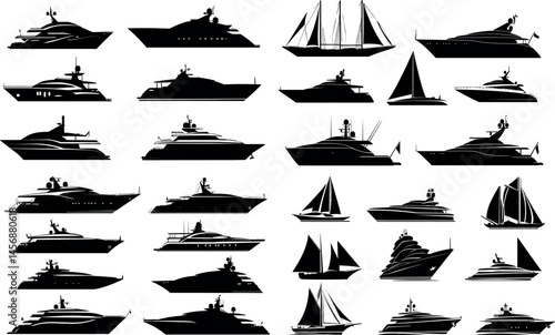 Watercraft silhouettes including sailboat yacht canoe and kayak