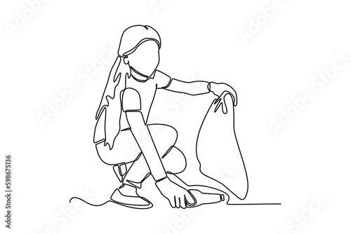 Single continuous line drawing of a pickaxe tool, mining equipment, and construction instrument.