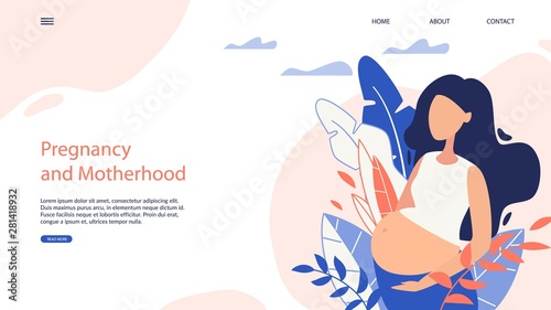 Pregnant woman walking. Active well fitted pregnant female character. Happy pregnancy. Yoga and sport for pregnant. Flat cartoon vector illustration