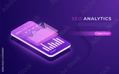Search engine rank isometric landing page. Seo marketing and analytics, online ranking result. 4ir 3d vector concept. Illustration of seo optimization, isometric of web internet