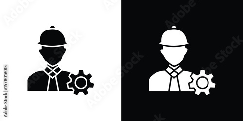 Construction worker icons in solid and stroke graphics