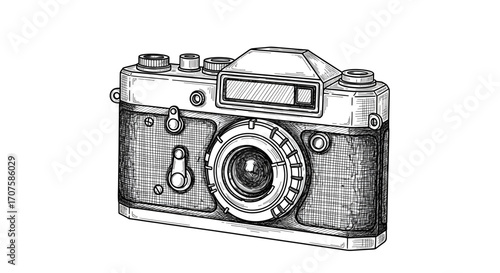 Vintage film camera photography equipment with lens and shutter for professional photographers use