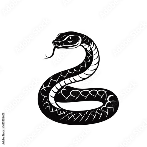 Majestic Cobra Snake Silhouette Striking Pose Against White Background Exotic Venomous Serpent Serpent Symbol Graphic Representation Reptilian Elegance Wildlife Illustration
