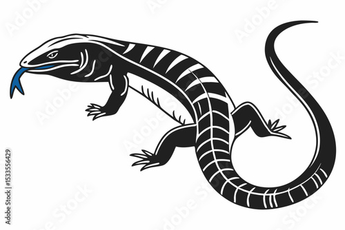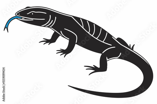Komodo Dragon Flicking Tongue Vector Silhouette