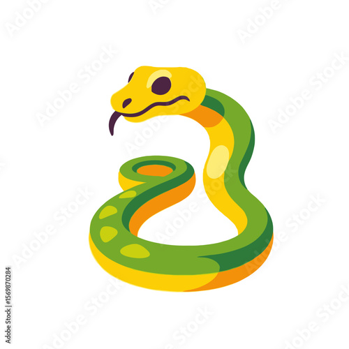 Cute cartoon snake vector illustration for kids educational resources and graphic design projects, green and yellow