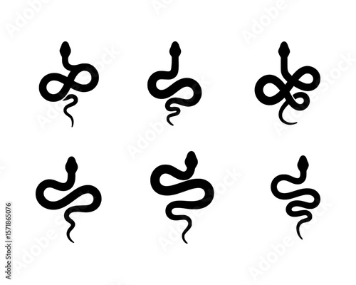 Minimalist Black Snake Silhouettes Representing Wildlife, Nature, and Symbolism in Simple Graphic Forms