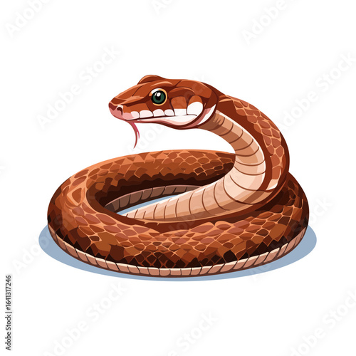 Coiled Brown Snake Illustration with Tongue Out on Black Background Reptile Isolated