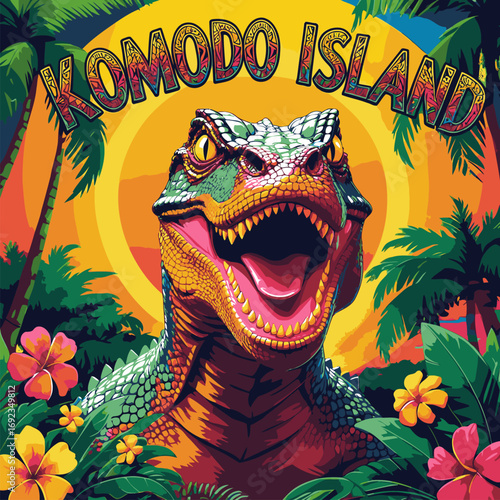 Komodo Dragon Illustration Powerful Reptile Artwork, Majestic Lizard Design, Indonesian Wildlife Vector Graphic