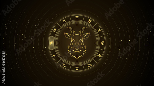 Modern magic witchcraft card with astrology Capricorn zodiac sign. Realistic hand drawing ram or mouflon head. Zodiac characteristic