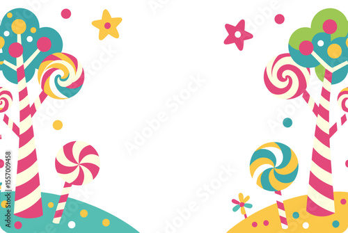 Sweets and candy pattern. Cartoon birthday party backdrop, sweet candies flat vector background illustration. Lollipops backdrop
