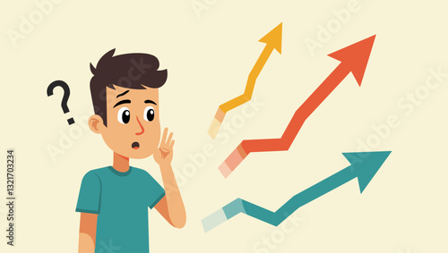 A confused person is surrounded by arrows and question marks, symbolizing decision-making, problem-solving, and uncertainty. Perfect for presentations, blog posts, websites, and marketing materials.