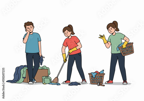 A collection of illustrations depicting people experiencing various emotions of worry and sadness.
