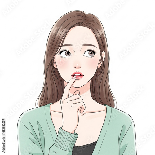 Young Woman Thinking Hesitant Doubtful Expression Pensive Contemplating Decision Isolated on Transparent Background