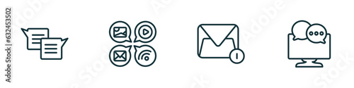 Speech bubble Editable stroke line icon set. Chat message symbol. Chat, bubble speaking, talking, discussion and more. Social media message signs