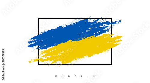 abstract grunge background with paint brush and halftone effect, template design banner with blue and yellow gradient colors of ukrainian flag