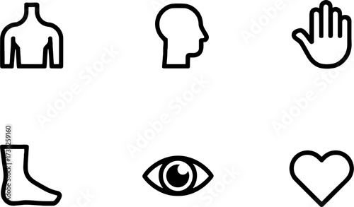 Collection of human organ icons in black and white, illustrating internal anatomy for medical and educational purposes
