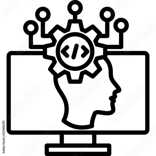 Artificial Intelligence Essentials Vector Icon Pack. Machine Learning, Algorithms, Smart Devices, and Future Tech Symbols in Outline Design.