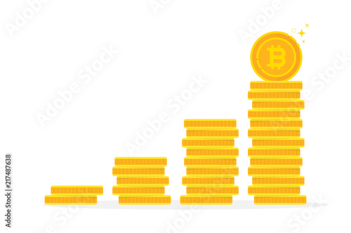 Modern trend illustration of bitcoin and cryptocurrency growth. A bullish wave in the cryptocurrency market. The rise in the price of bitcoin picture.  Good news about Bitcoin. Green arrow and coin.