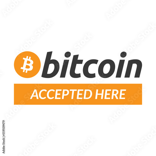 Bitcoin accepted here sign isolated on white background. Vector illustration in flat design.