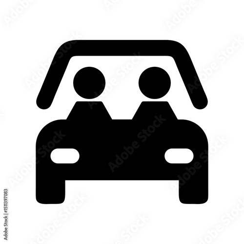 Car driver icon. Black simple vehicle symbol with person inside for web and app design. Vector illustration for transport, driving, automobile, or ride-sharing service.