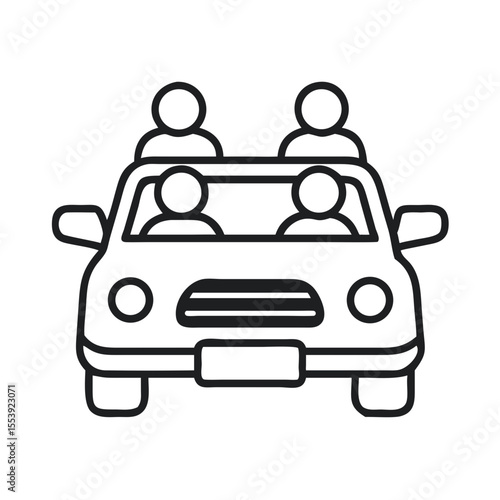 Carpool icon set. Ride-sharing, meeting point, and pickup zone outline symbols. Shared car, passenger, and driver agreement vector graphics for transport and commute concepts.