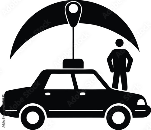 Silhouette of Taxi Cab with Driver Figure for Transportation and Ride Sharing Icons