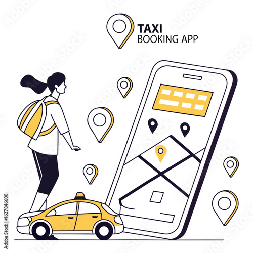 Taxi Booking: Smartphone with Map and Location Pin for Ride-Hailing Service