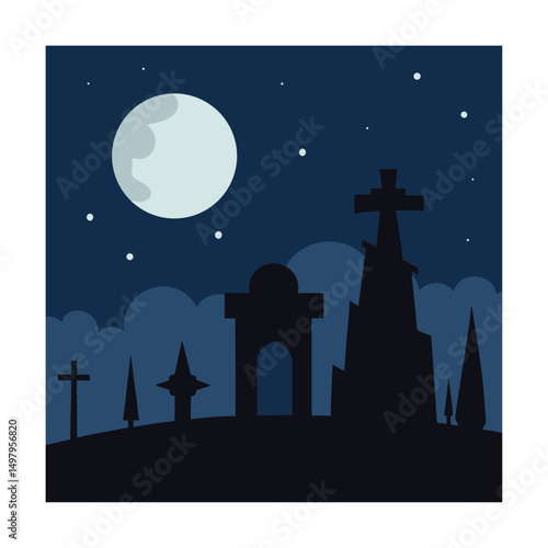 silhouette cemetery graveyard gate with moon night