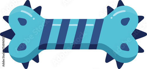 Blue dog bone toy with spikes and stripes for pet play and chewing enjoyment