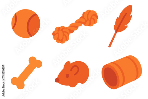 Dog toy icons set – flat style for pet accessory and puppy play symbols