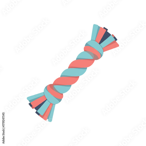 Colorful illustration of a dog chew toy with a twisted rope design in pink, blue, and black hues against a clean white background.