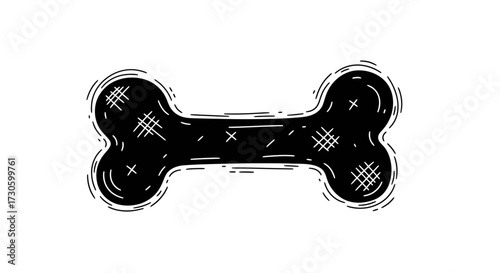 Stylized canine bone illustration with textured fill and outlined edge detail for playful aesthetic