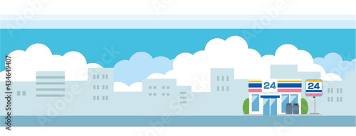 かわいい都会の街並みの黒とパステルカラーのモダンな背景イラスト