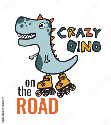 cute funny color dino, dinosaur illustration, dino design, childish art, design print for nursery