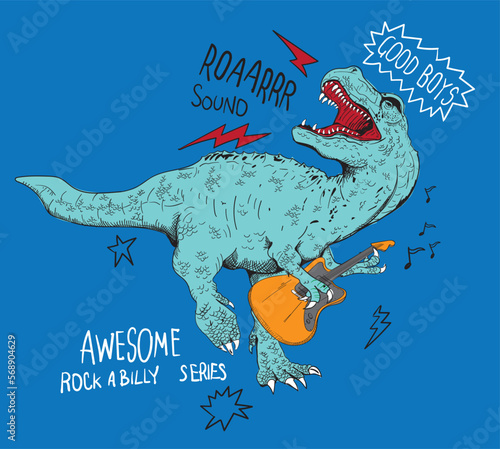 dinosaur slogan on tyrannosaurus rex silhouette vector illustration created by hand drawn