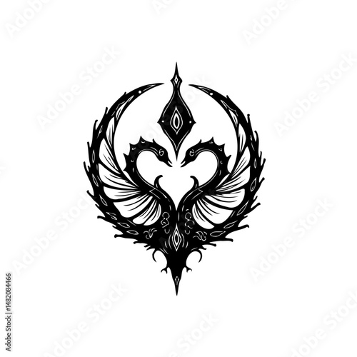 Winged swords in vibrant colors against a dark background create a fantasy emblem