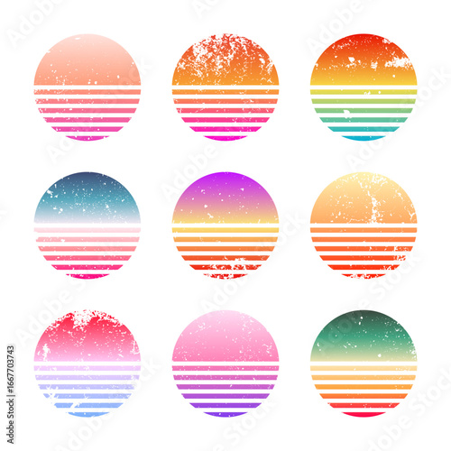 Holographic foil sticker. Holo emblem tags templates with iridescent color gradient, retro 90s vaporwave style labels vector set