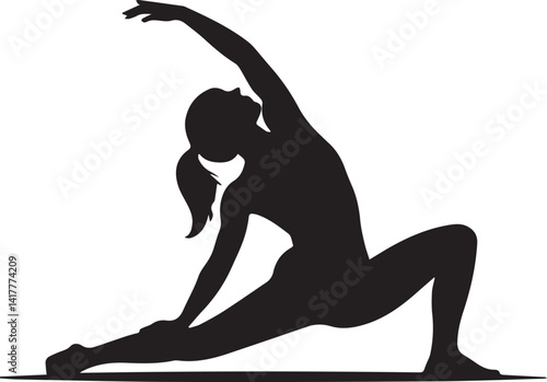 Vector art of silhouette of a woman doing a side plank exercise, showcasing fitness, strength, and balance in a healthy and active lifestyle