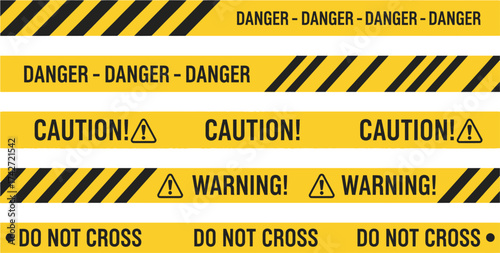 Vector collection of yellow striped police tape in seamless pattern do not cross, danger, warning Seamless Vector collection