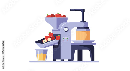 Conveyor line for packaging juice, production process stage vector Illustration on a white background